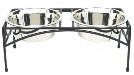 The Regal Double Diner is a simple, elegant, back to the basics design, while still being modern and stylish. Non-skid plastic tips on legs. Elevated dog bowls are a necessity to your pet's health because they allow your pet to eat without crouching down in an uncomfortable posture. Elevated dog feeders improve back pain and neck pain. They also aid in reducing gas because your pet is able to eat in a natural position.